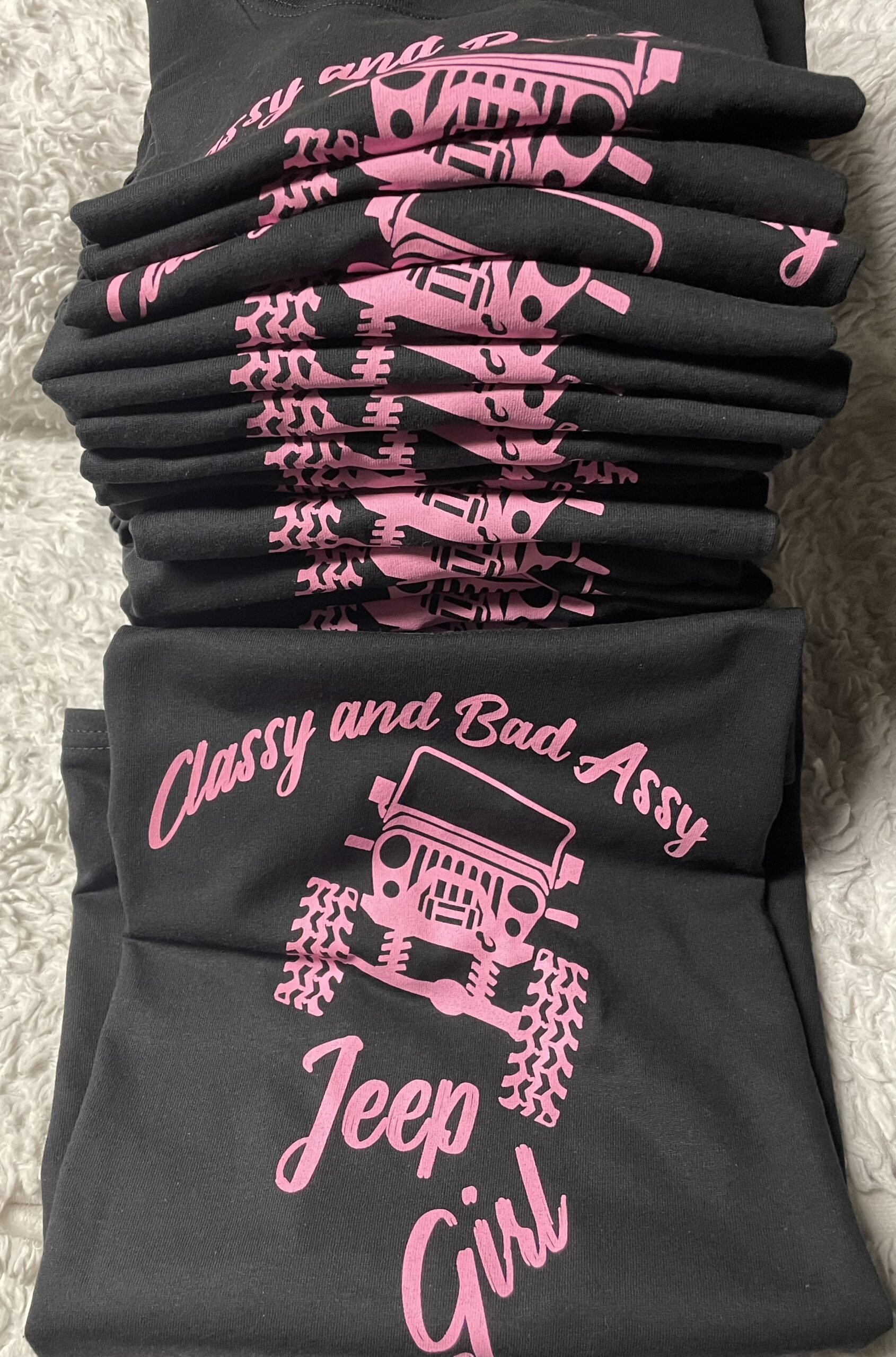 For the woman who isnât afraid to get a little mud on the tires while still rocking her style â the âClassy & Badassy Jeep Girlâ tee is made for those who own the trail and the attitude. Whether youâre cruising topless in the sunshine, flexing on the rocks, or showing up to a Jeep meet with that confident smile, this shirt says exactly who you are: equal parts fierce, feminine, and unapologetically bold.